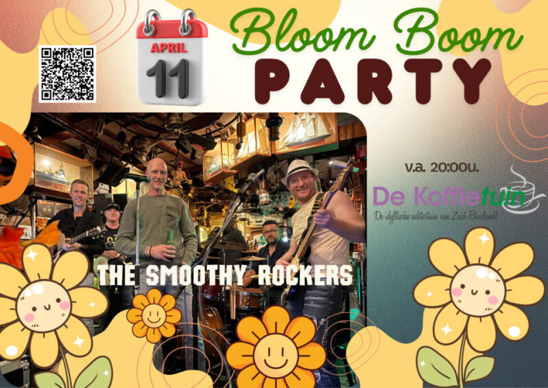 Zaterdag 11 april - mis het niet! Het voorjaar barst los... en dat vieren we met een knalfeest! Op het podium: The Smoothy Rockers - dé elektrische rockcoverband die al sinds 2014 garant staat voor energie, plezier en keiharde muzikale gezelligheid.