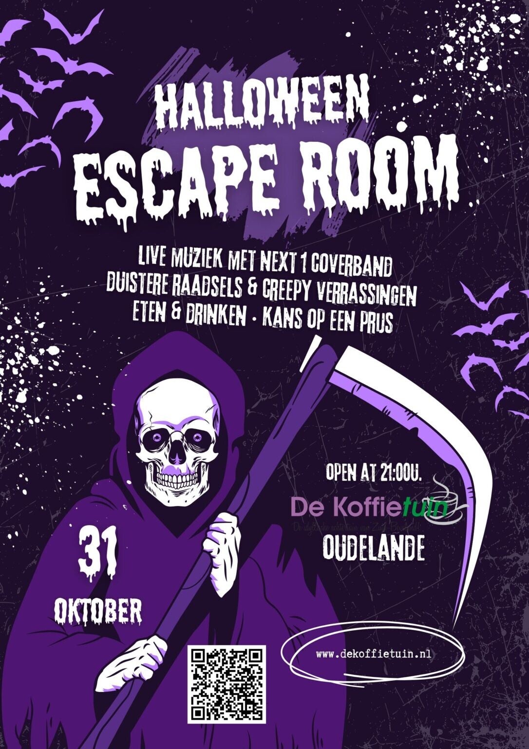 Probeer uit de tuin te komen waar velen op mysterieuze wijze de dood hebben gevonden...! Gaat het jou lukken? Op zaterdagavond 31 oktober is het jouw kans!